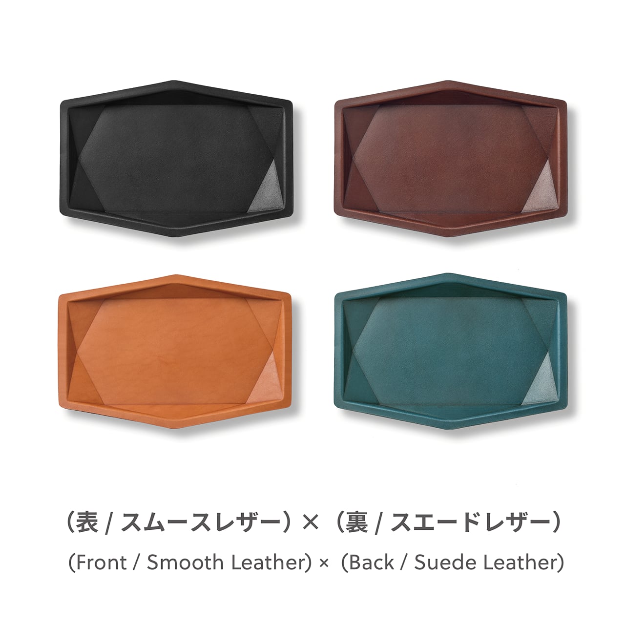 多面体が美しくインテリア性が高いレザートレイ