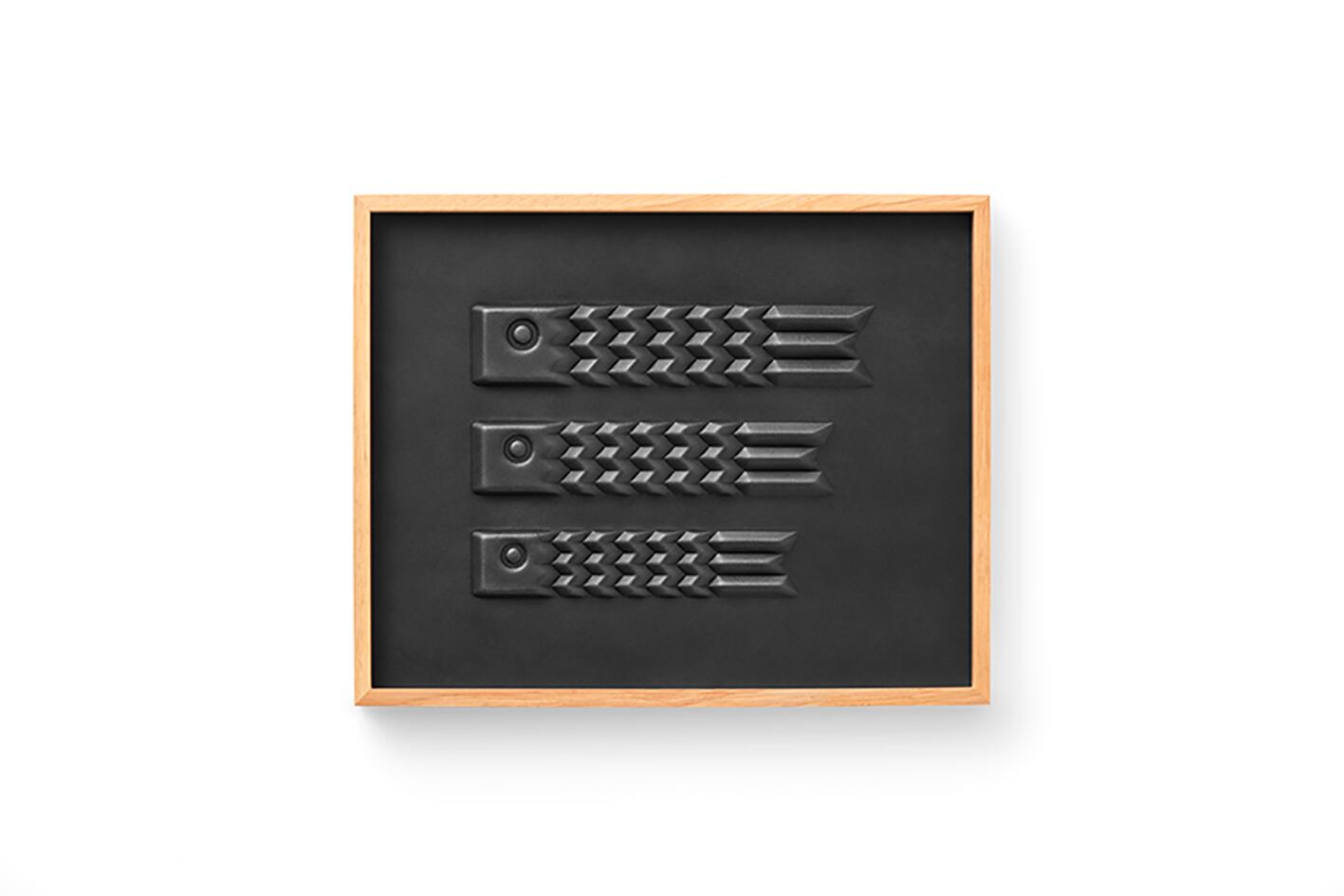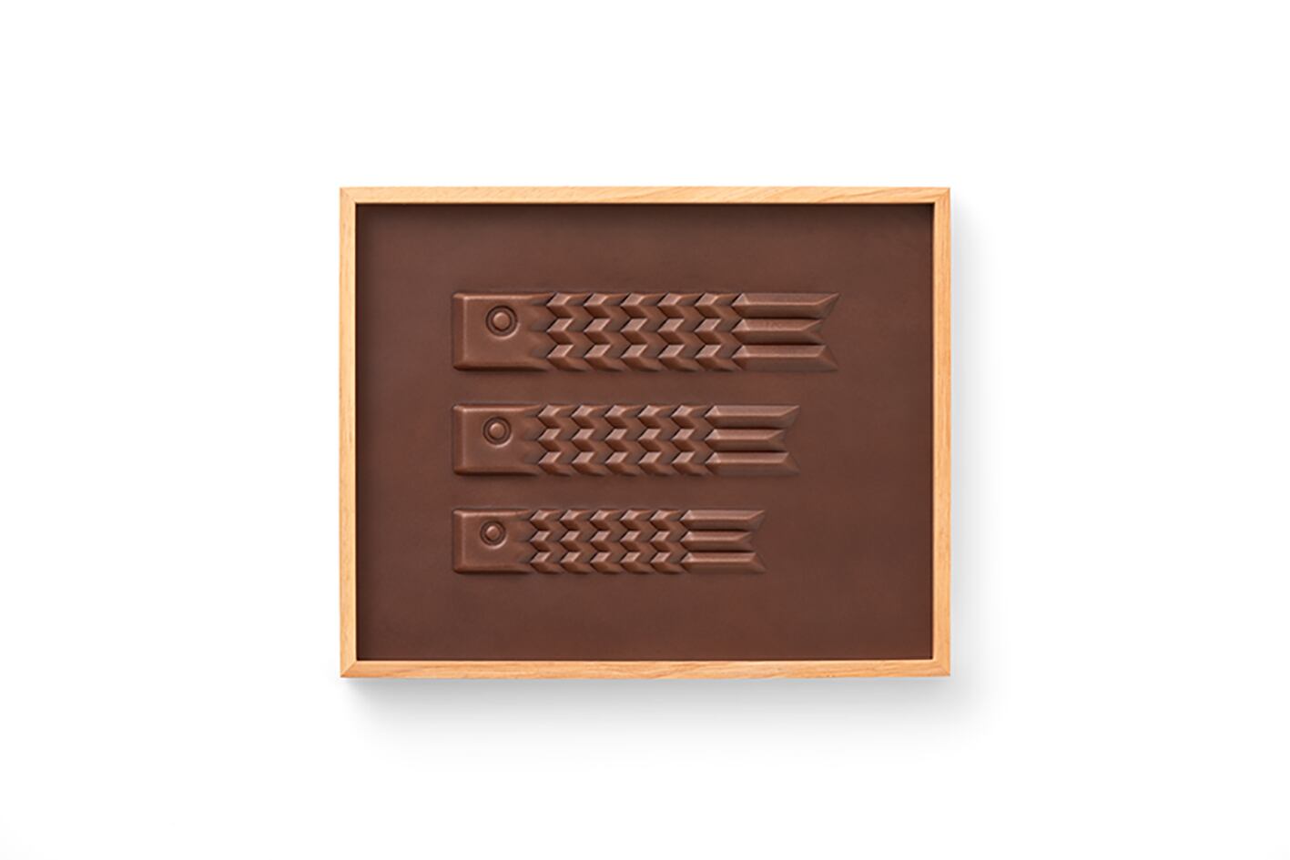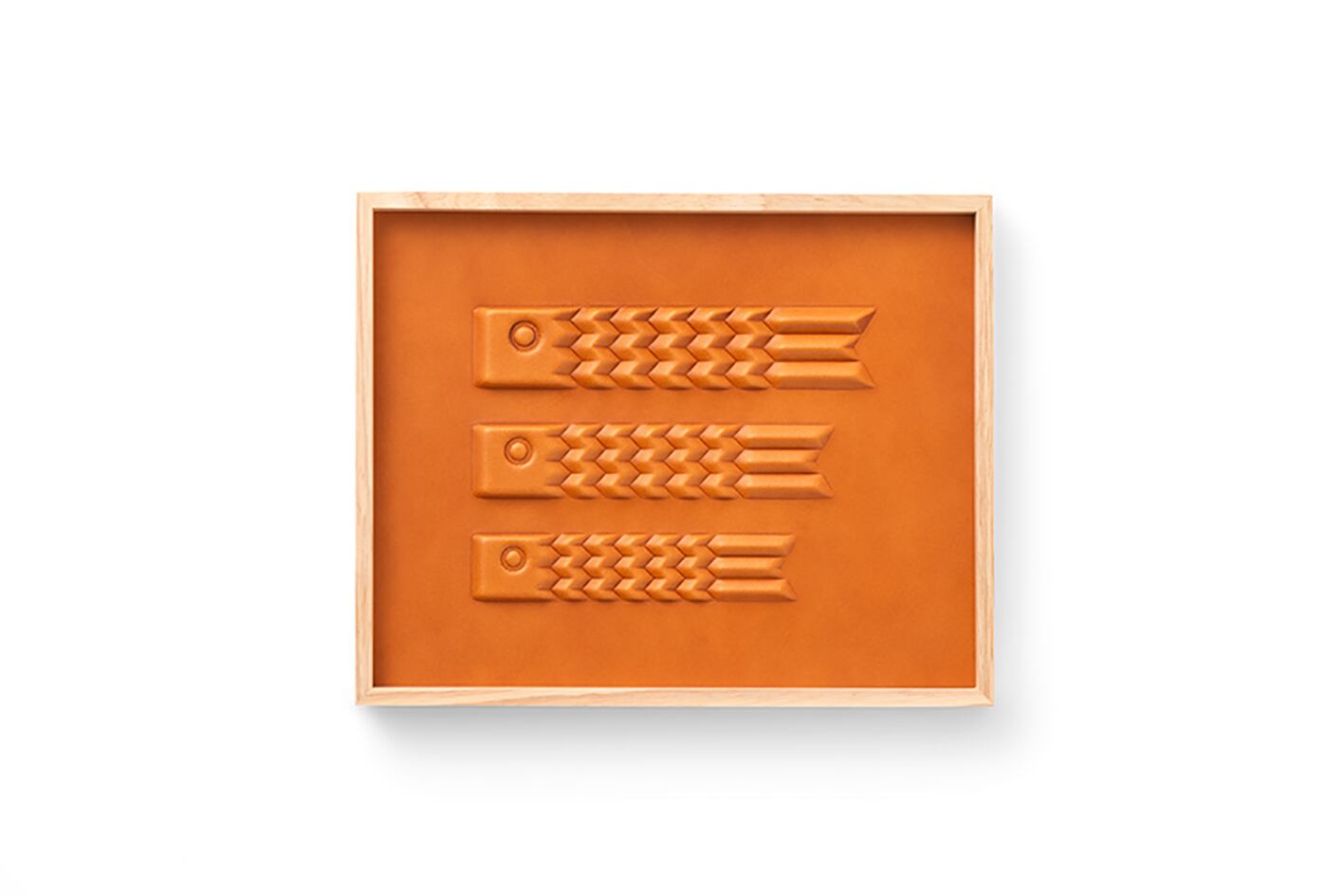 従来の革しぼりは木製の型を使用しているため単純な形状になりますが、3D切削加工した樹脂型で革を上下からはさみ込むことで複雑な凹凸形状を製作可能にしています。その独自技術を生かして新たなプロダクトを開発しました。